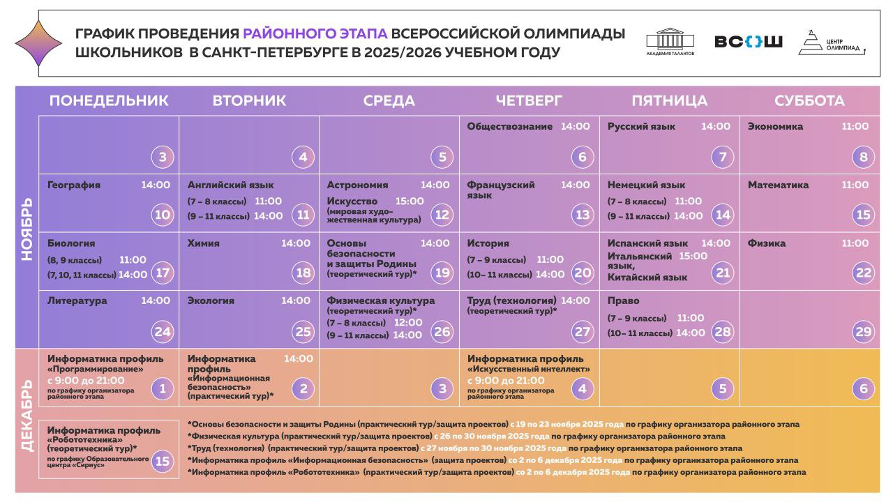 - Пункты проведения районного этапа ВсОШ 2025-2026