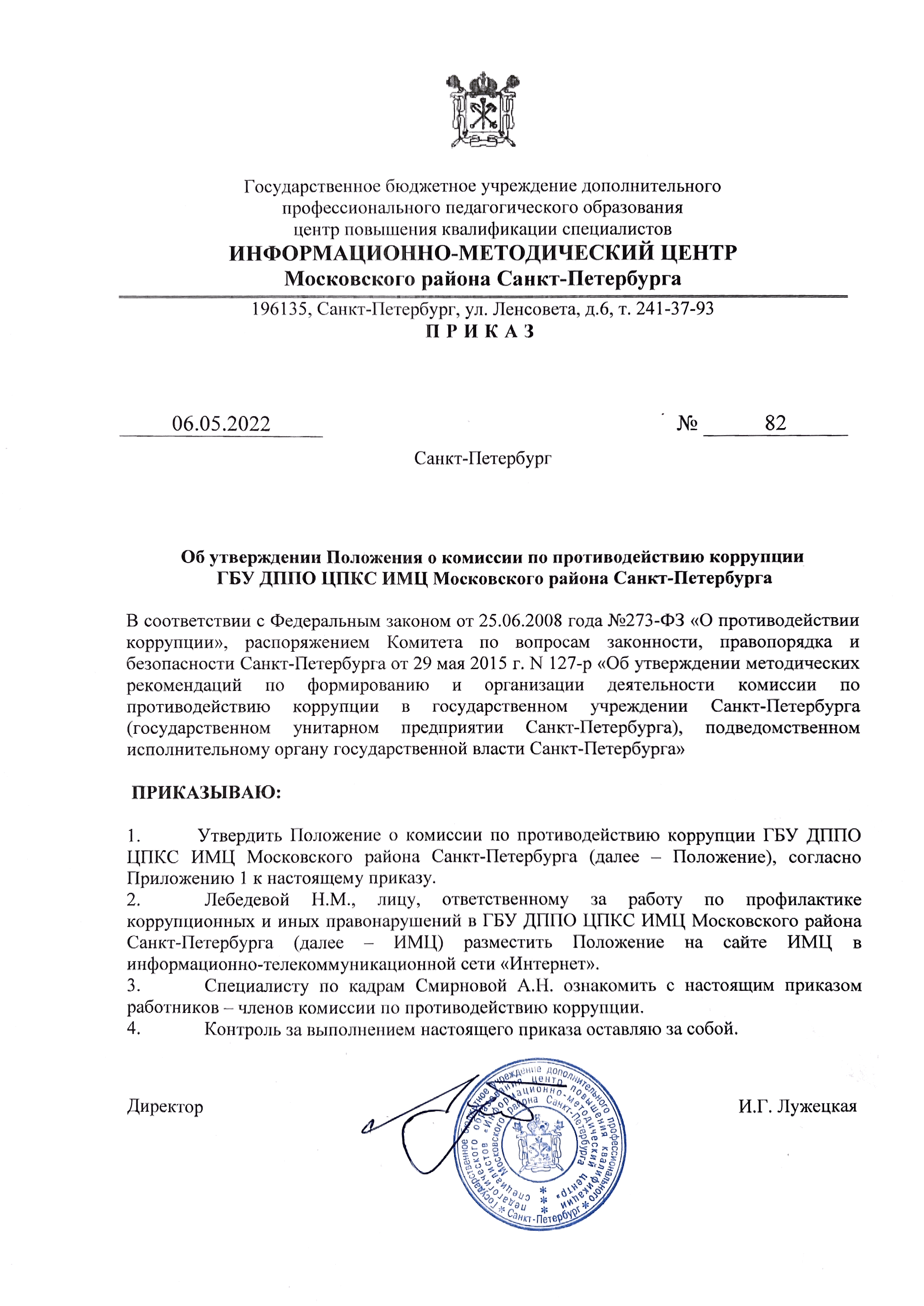 - Приказ об утверждении Положения о комиссии по противодействию коррупции