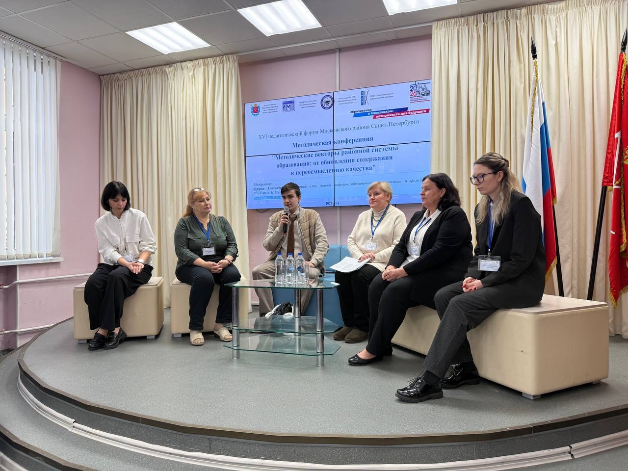В феврале 2026 года состоялся XVI педагогический форум Московского района «Образование в Московском: возможности для будущего». Форум - открытая площадка обмена передовым педагогическим опытом. В 2026 году в рамках форума прошло 17 образовательных событий (семинар, конференция, практикум, тематический день, фестиваль, экскурсия) для руководителей и различных категорий педагогов по актуальным направлениям: реализация проекта «Школа Минпросвещения России», развитие государственно-общественного управления образованием, дошкольного образования, талантов в дополнительном образовании; профессиональное развитие педагогов, организация деятельности профильных психолого-педагогических классов, а также проведены тематические дни, посвященные развитию инженерного образования, повышению качества образования, управленческой команды. В форуме принял участие 1131 участник.